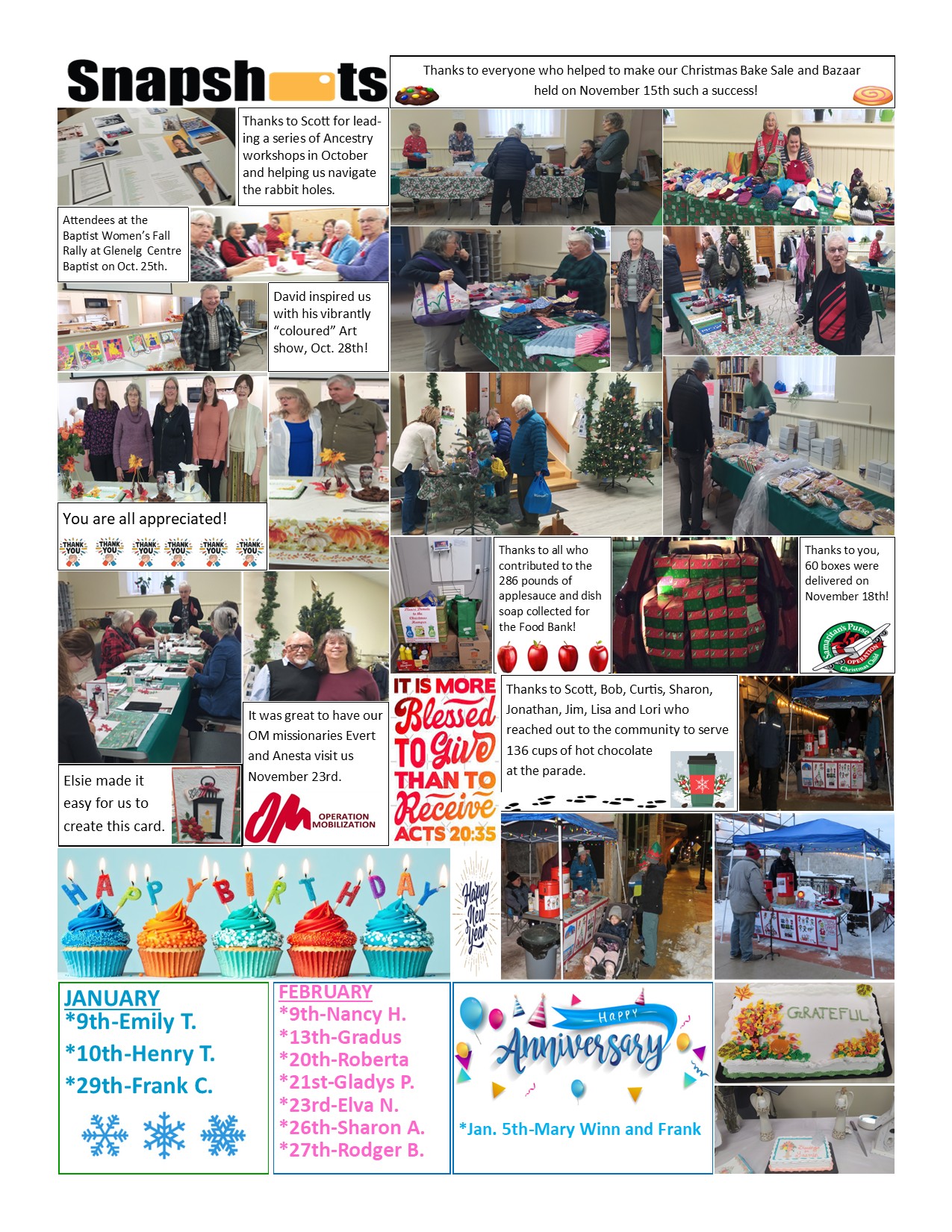 Serving the community by donating to the local food bank and serving meals at the Green House.